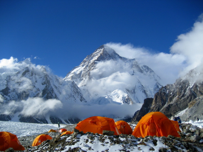 06/2013: Broad Peak-Basislager; im Hintergrund der Berg der Berge - der K2 / Broad Peak Expedition (8047 m)