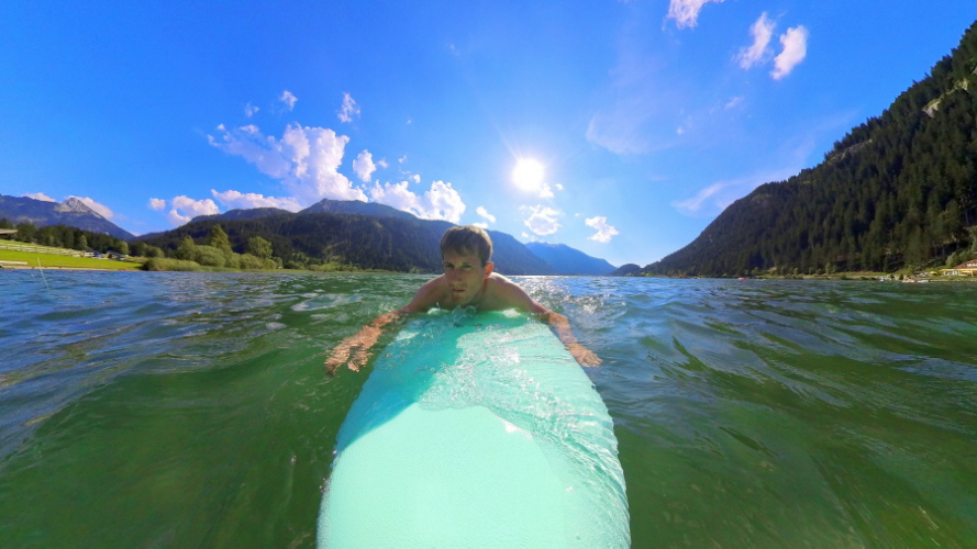 08/2023: Mit Surfboard am Haldensee